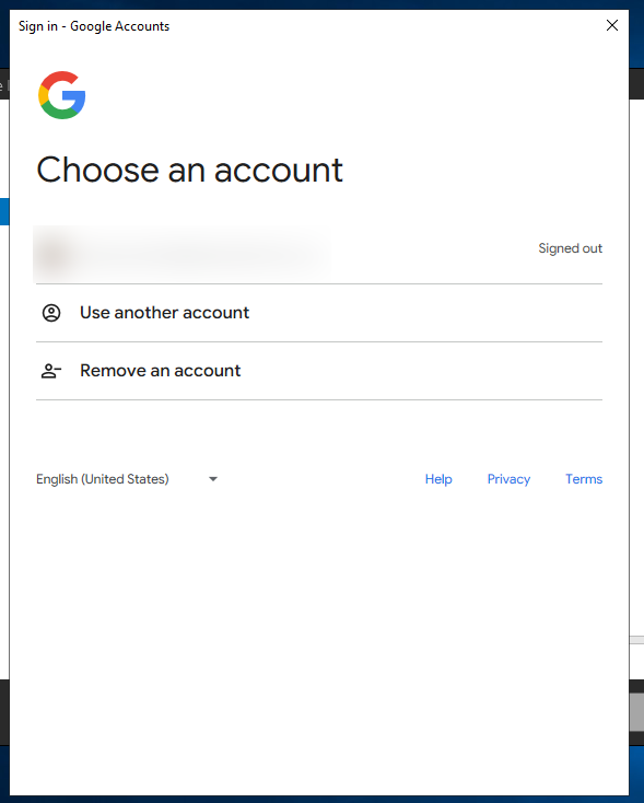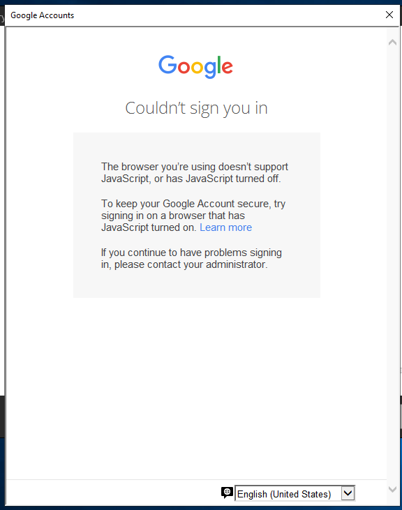 Running the application as usual, and trying to Customize synchronization options, we get the above screen. This is not a Google Login screen, and there is about a zero percent chance of this working.