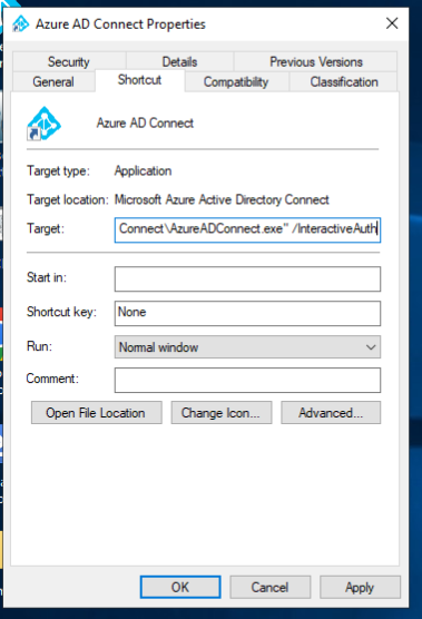 The solution was a registry entry. I modified that entry to AzureAdConnect.exe instead of Outlook.exe. Next, I logged out and back in.
