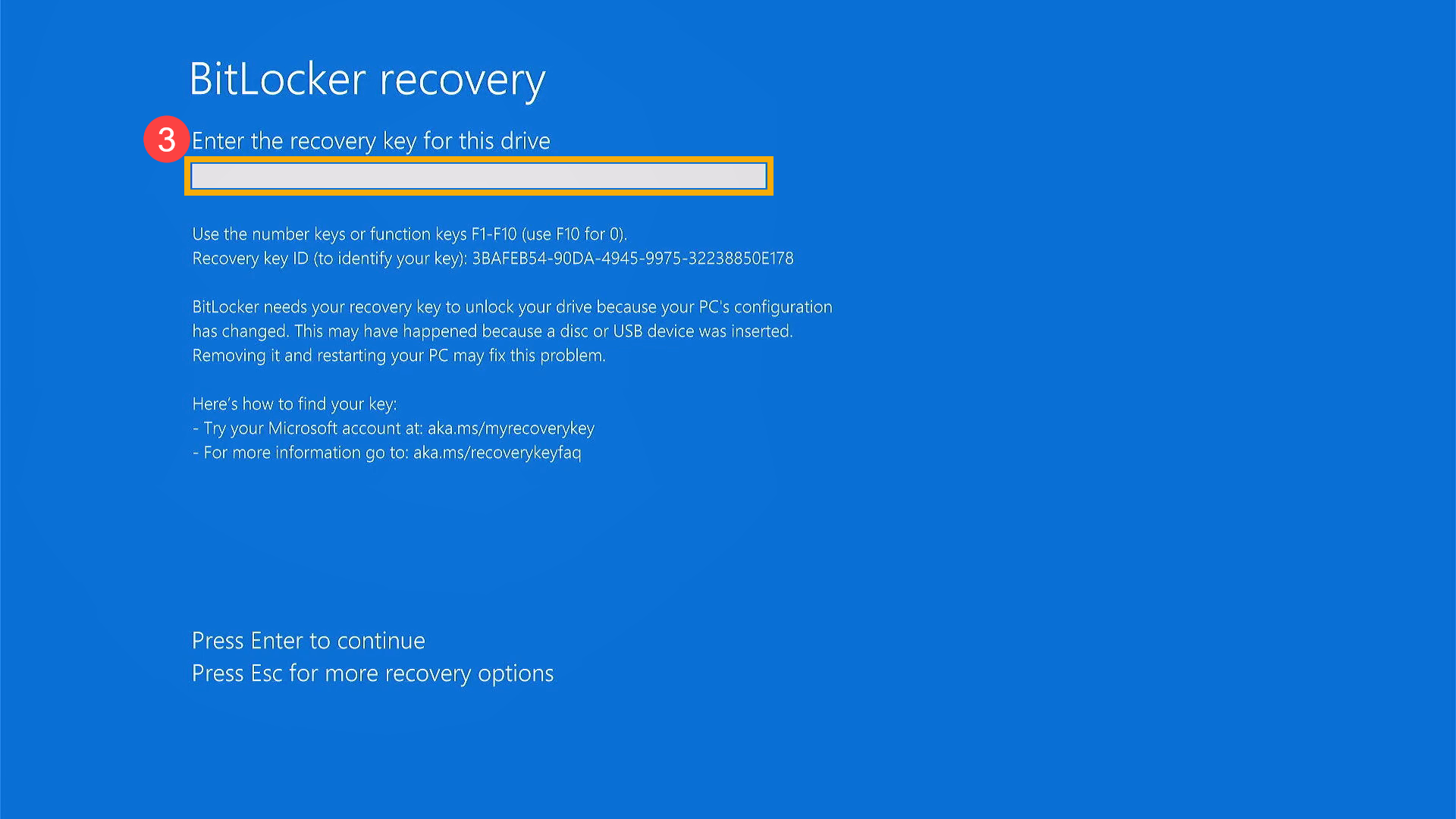 If things go sideways on the workstation, you may see the screen in the image below. You'll need to dig up the recovery key to continue booting: