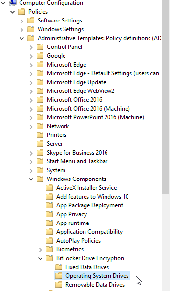 First we need a bit of group policy to make sure that when our workstations run the command to begin encrypting themselves, they do it the correct way. We'll need to open up Group Policy Management Editor, create a new GPO, then navigate to Computer Configuration > Policies > Administrative Templates > Windows Components > Bitlocker Drive Encryption > Operating System Drives