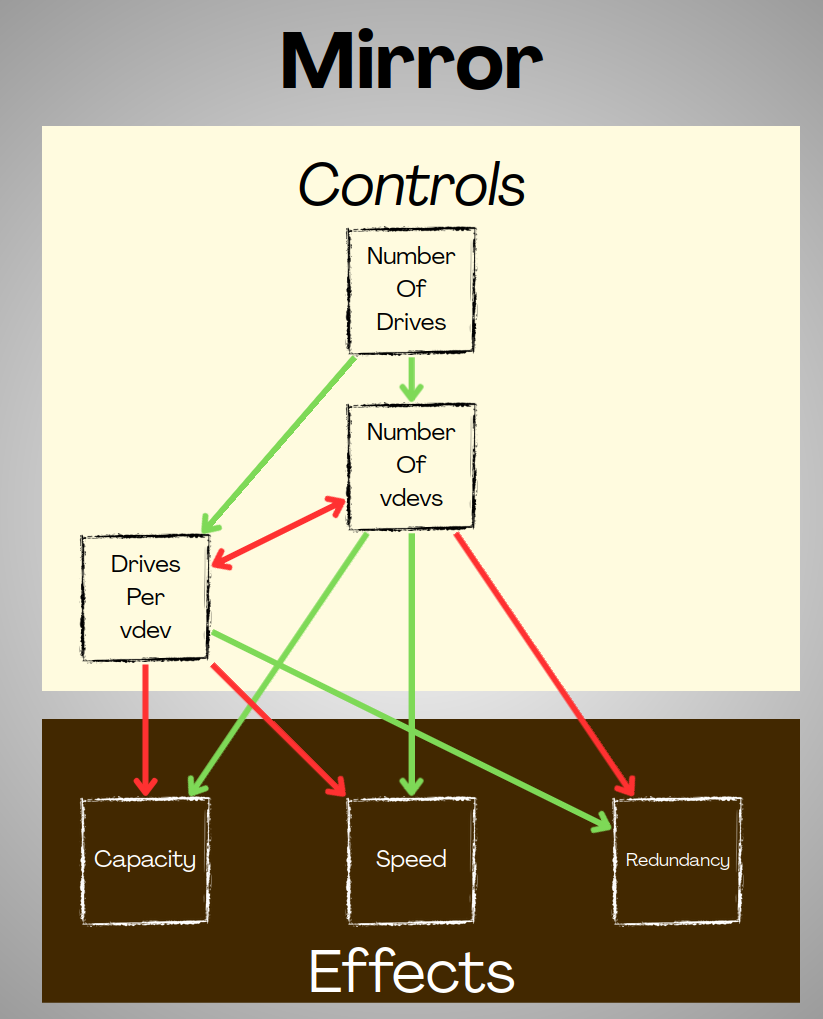- If we add more drives per vdev, we can't create as many vdevs.