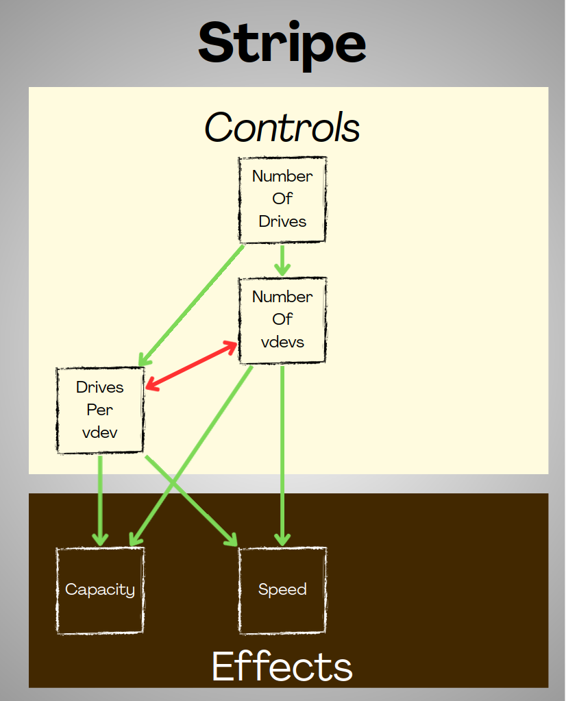 - If we increase the number of vdevs, we have to have fewer drives per vdev.