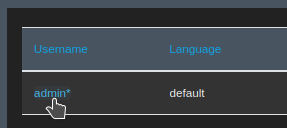 Now click "Options" at the top, "Users" on the left, and click "admin*"