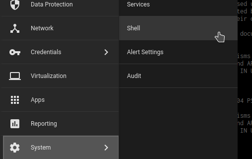 First, go to System > Shell (or SSH into your TrueNAS machine.)